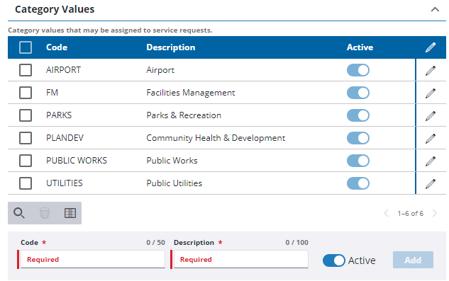 Add Category Values that can be assigned to a service request.