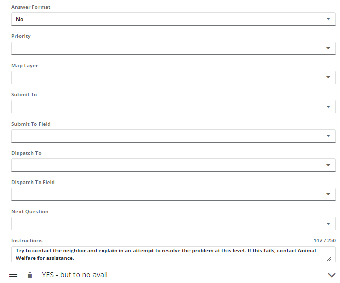 - Select the answer and enter the answer details, including the Next Question that follows based on this answer.