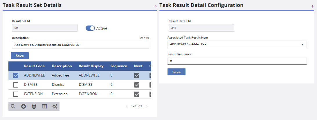 - Edit any desired fields in the Task Result Detail Configuration panel and click Save.