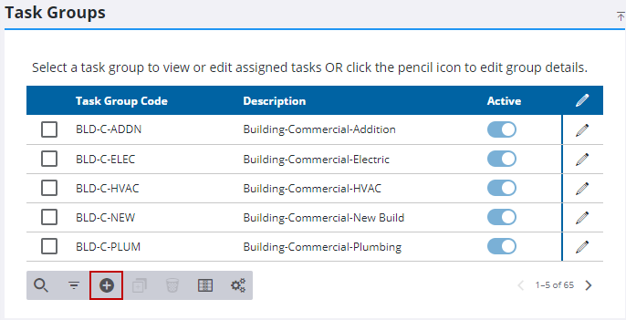 - Under New Task Group, enter a 10-character identifier for the group in the Task Group Code field.