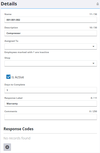 Task templates are used to define the parameters of a task. Task templates contain default information for each task, including who the task is Assigned To, the Shop, Days to Complete, the Response Label, and Comments. Once task templates are created, you can add frequently used tasks to specific work order templates. See Add a Task to a Work Order Template for more information.