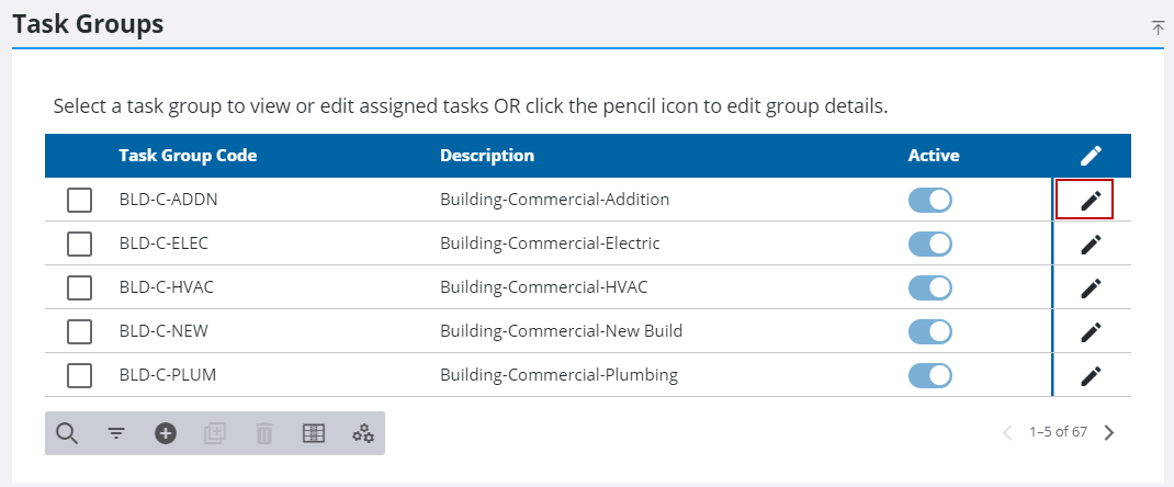 - Click Edit on the far right of the task group you want to edit.