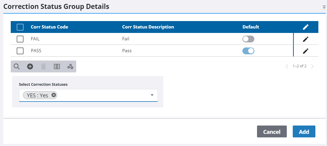 - Use the Select Correction Statuses drop-down list to select a correction status and click Add.