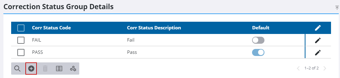 - To add a correction status, click Add record on the Correction Status Group Details panel.