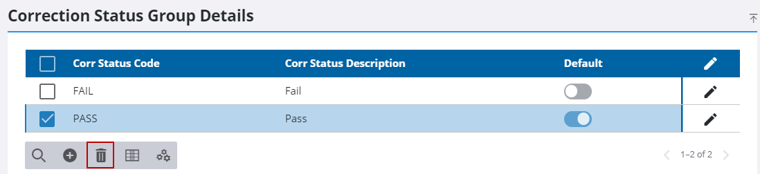 - To delete a correction status, select the status you want to delete on the Correction Status Group Details panel.