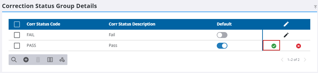 - To toggle the Default switch for a correction status within a correction status group, select the status group you want to edit.