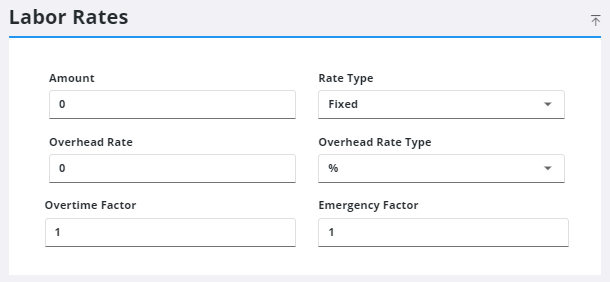 1. In the Labor Rates panel, define the contractor's labor rates.