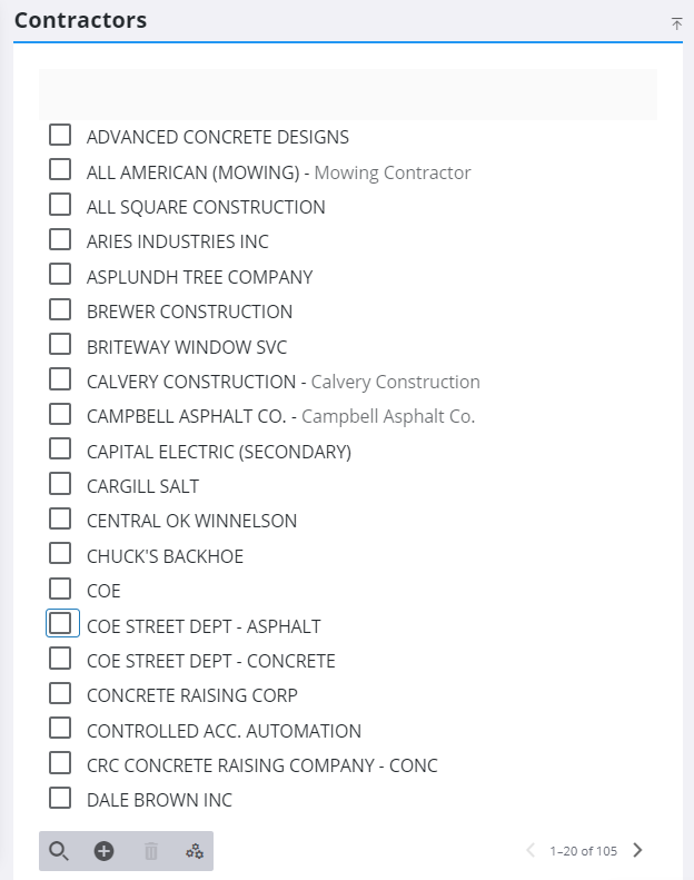 NOTE: Contractors can also be added using the Table Editor. See Table Editor for more information.