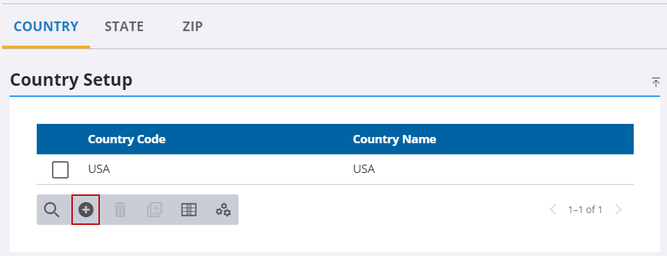 - On the Country Setup panel, click Add record.