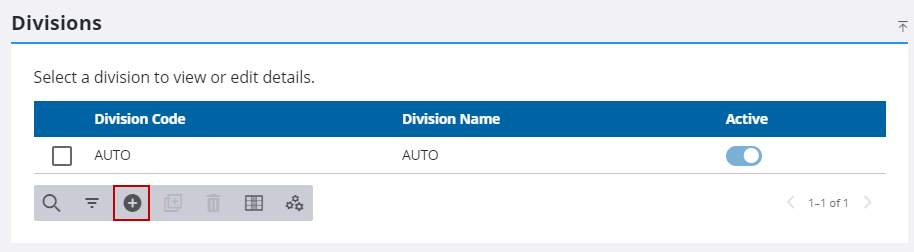 - On the Divisions panel, click Add record.