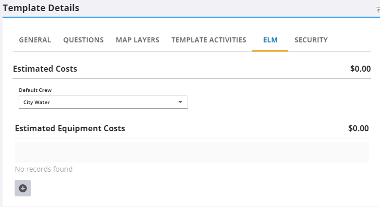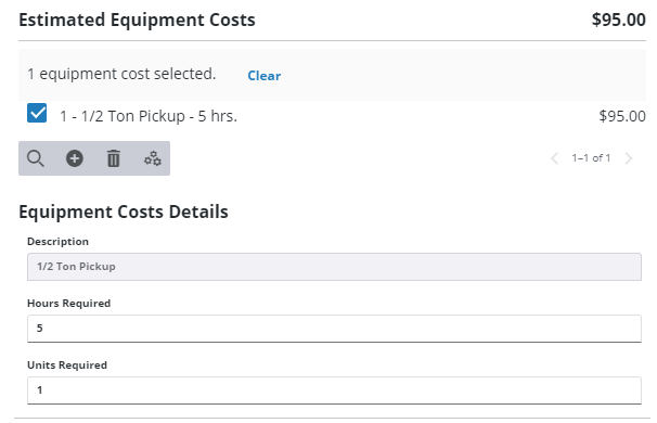 Employee or contractor equipment can be added to the service request template so that it is automatically included on any service request created from the template. The equipment costs are listed on the service request as an Estimated cost, which, if accurate, can be moved to the Actual cost.