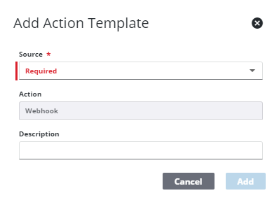Any existing webhooks templates appear with the Source listed to the right of the template name. Any templates that are not associated to an Action Event appear grayed out in the list.