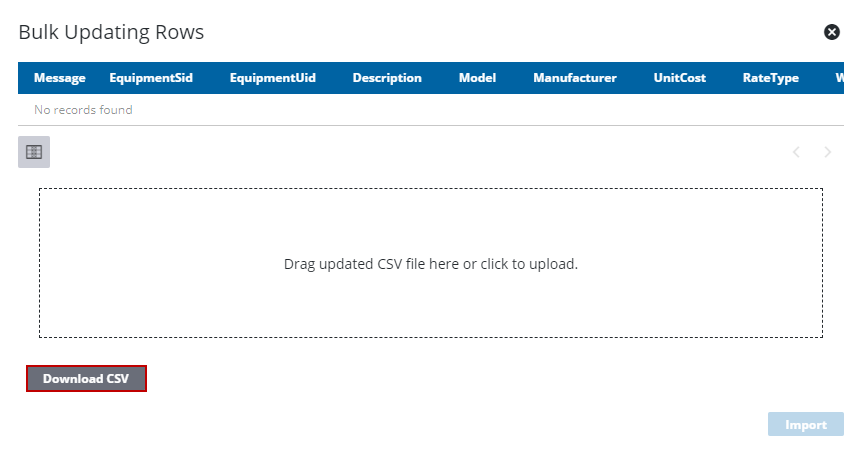 IMPORTANT: Only existing records can be edited. New records cannot be added at the same time and will result in an error if you try to upload the CSV. See Perform a Bulk Import for more information on adding new records in bulk.