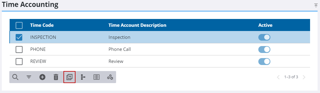 - Select a desired time code on the Time Accounting panel and click Clone selected items.