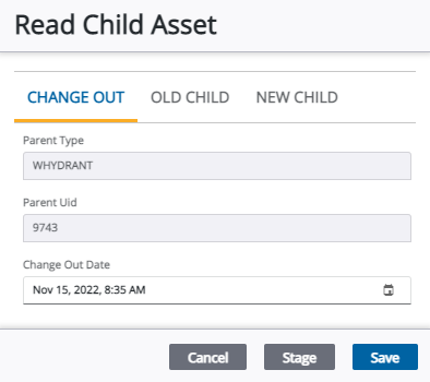 - WorkCompleted: Select this to add the Work Completed field to the Change Out, Old Child, and New Child tab, with the customized label you entered.