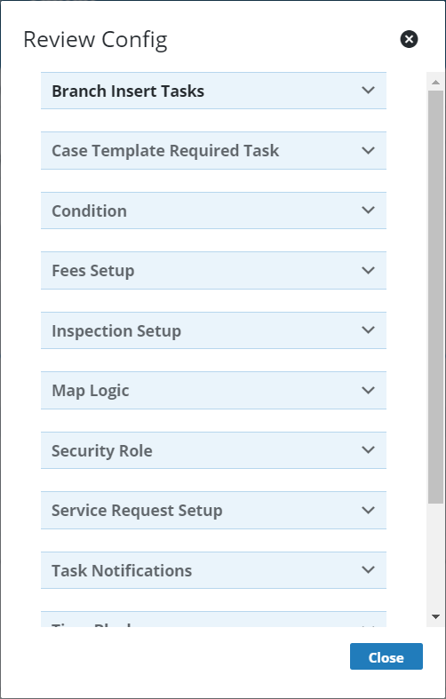 The Review Config panel shows what kind of other records reference the selected task. Click the arrow icon next to a record type to see which exact records reference the selected task.