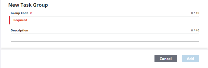 - Under New Task Group, enter a 10-character identifier for the group in the Task Group Code field.