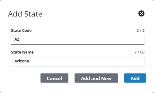- Click Add or Add and New to add the state and add another one.