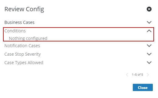 - On the Case Types panel (or other desired PLL panel), click the case type (or other desired PLL data item) that you want to review the configuration for, and click Review Config.