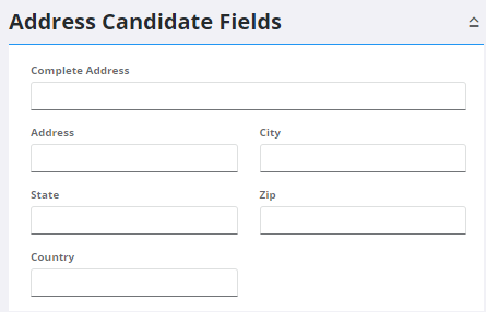 If you desire a greater level of configuration for the geocode service, there are additional fields that can be configured. If you populate the Address Candidate Fields, we recommend that you also populate the corresponding fields under Location Candidate Fields (reverse geocoding) to ensure that reverse geocoding works properly.