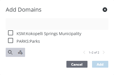 - Select a Domain and click Add. You can filter the list by typing the first few letters of the domain in the search field.