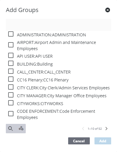 In the Add Group panel you can filter the list by typing the first few letters of the group in the search box at the top.