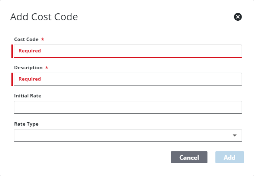 - Enter a Code and Description for the new cost code.