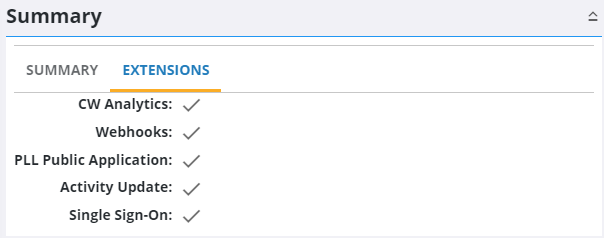 The Summary panel has two tabs: the Summary and Extensions tabs. The Summary tab lists your License Key, the Maintenance End Date, and the Date Activated.