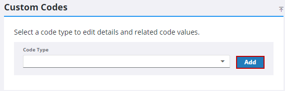 - To add a custom Code Type, click Add next to the Code Type field.