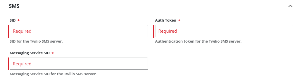 2. Enter the Messaging Service SID for the Twilio SMS server.