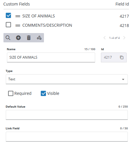 - To edit a Text custom field, select it from the Custom Fields section and make the desired changes.