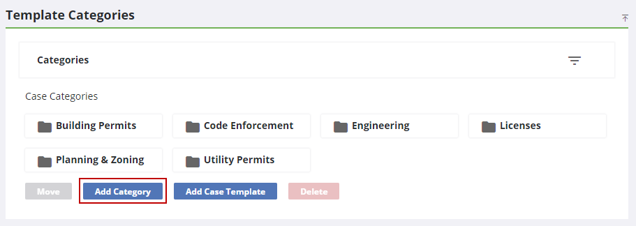 1. On the Template Categories panel, click Add Category at the bottom of the panel.