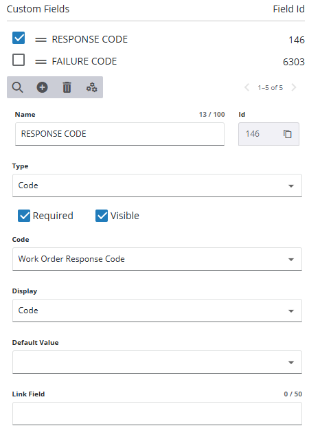 - Select the Required check box to make the custom field required to be populated before a work activity can be closed.