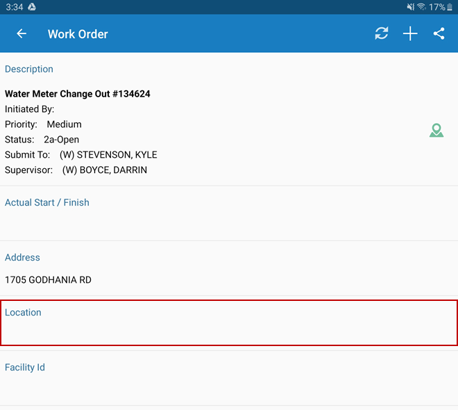 - Add or edit the location information, then return to the work order to save the changes.