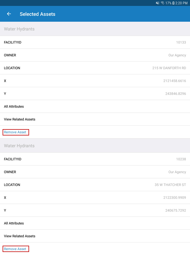 - On the Selected Assets page, tap Remove Asset under the asset to remove it from the selection. Multiple assets can be removed at one time.