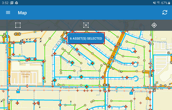 - Select multiple assets on the map. A message appears that shows how many assets were selected.
