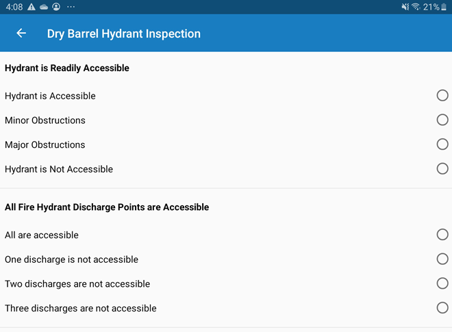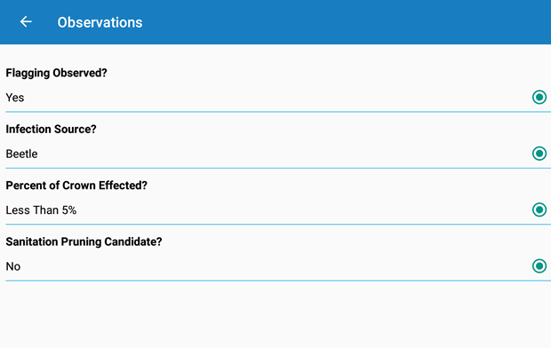 Branch observations display one at a time. The answer selected determines the next observation, allowing the user to only answer the observations pertinent to the asset.