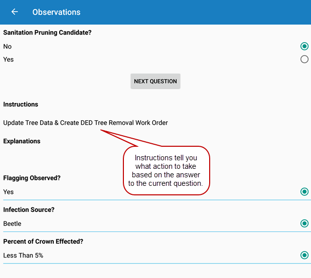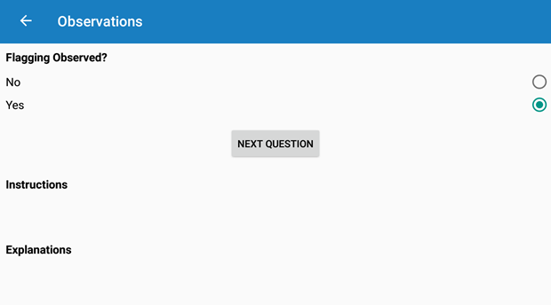 BEST PRACTICE: To prevent data loss, tap Next Question and sync the app to save your answers before proceeding or closing the app.