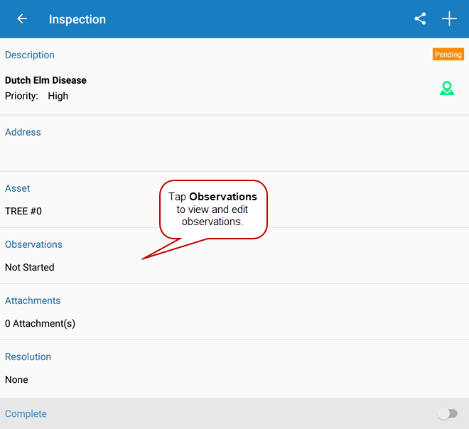 You can complete observations on a linear inspection or a branch inspection in the mobile apps.