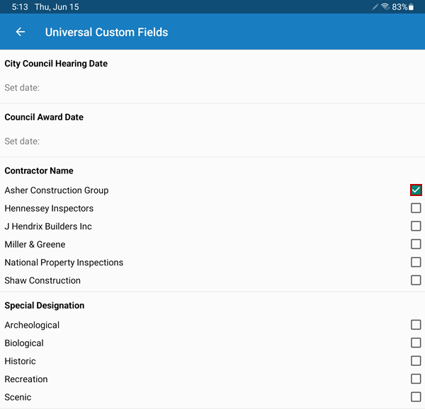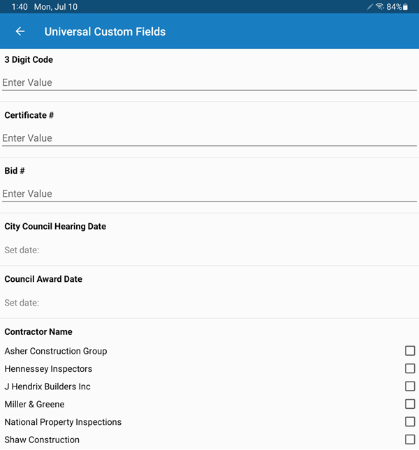 - Tap each field to enter the applicable data. These fields may include dates, options, or text boxes.