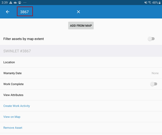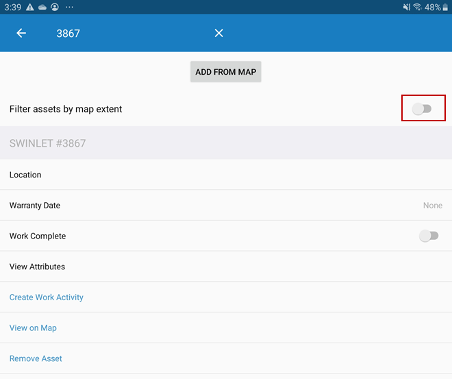- Tap the Filter assets by map extent switch to filter assets on the map.