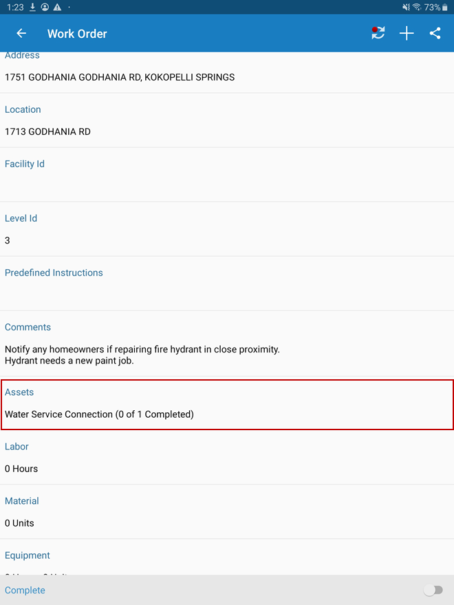 - Open a work order with multiple assets.