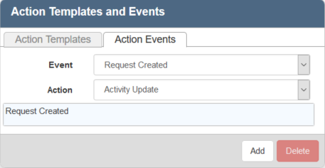 - Click the Action Events tab, select the Event and Action, and click Add.