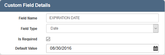 - To edit a Date custom field, select it from the Custom Fields panel, and make the desired changes.