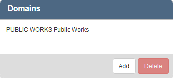 - Click Add in the Domains panel. Select a domain from the Add Domain list and click Add.