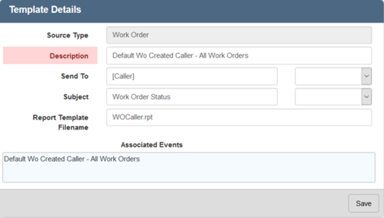 Email templates define the details of the email that is sent when triggered, such as recipient, subject line, content, etc. For example, you may create an email template to send an email to the supervisor when the Submit To on a work order is changed.