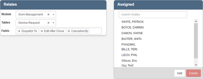 - Select Equipment Changeout, Inspection, Service Request Template, Project, Service Request, Search, Task, or Work Order for Work Management from the Tables drop-down list, or select Cityworksfrom the Tables drop-down list for Table Editor to assign the related permissions.