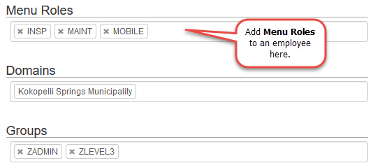 - In the Menu Roles section, click in the field to select the applicable roles for the employee.