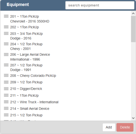 - Click Add to add a new piece of equipment.