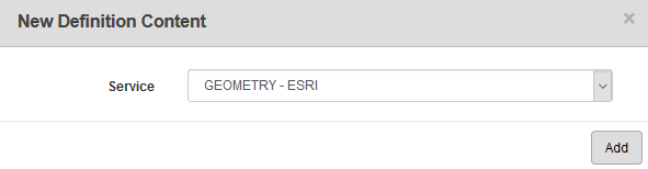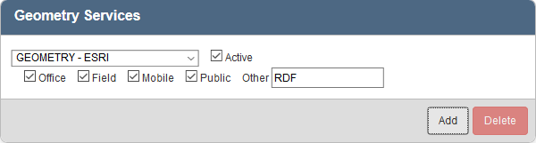- To add a new geometry service, click Add on the Geometry Services panel.